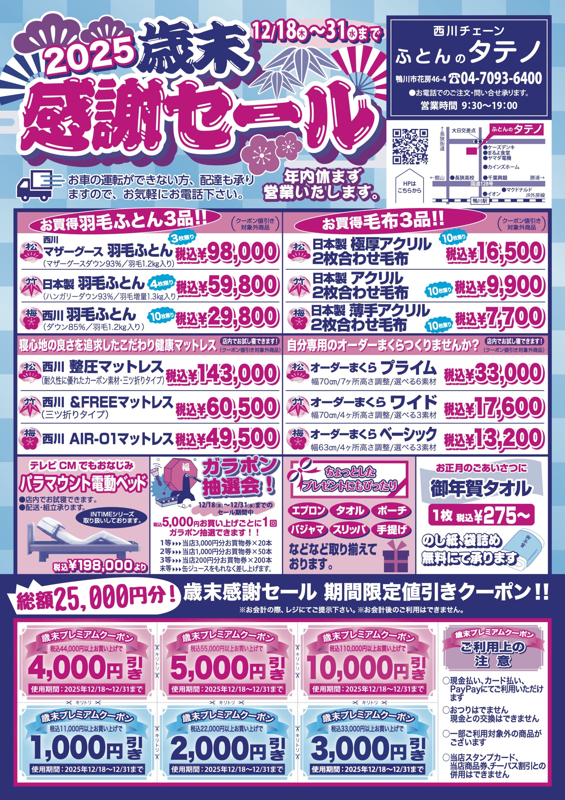 一年間の感謝の気持ちを込めた、大変お得な商品や特典を多数ご用意しております。この機会にぜひお立ち寄りください。